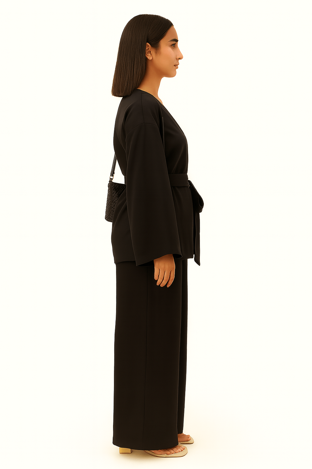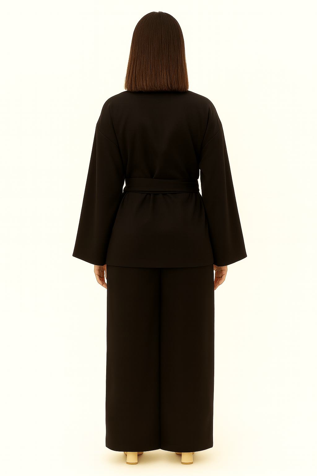 Description: Effortless and versatile, this black coord set is designed in a breathable Linen Mix fabric for everyday comfort with a polished edge. The wrap-style top features a tie belt that cinches the waist for a flattering fit, paired with wide-leg trousers that offer a relaxed silhouette and ease of movement.