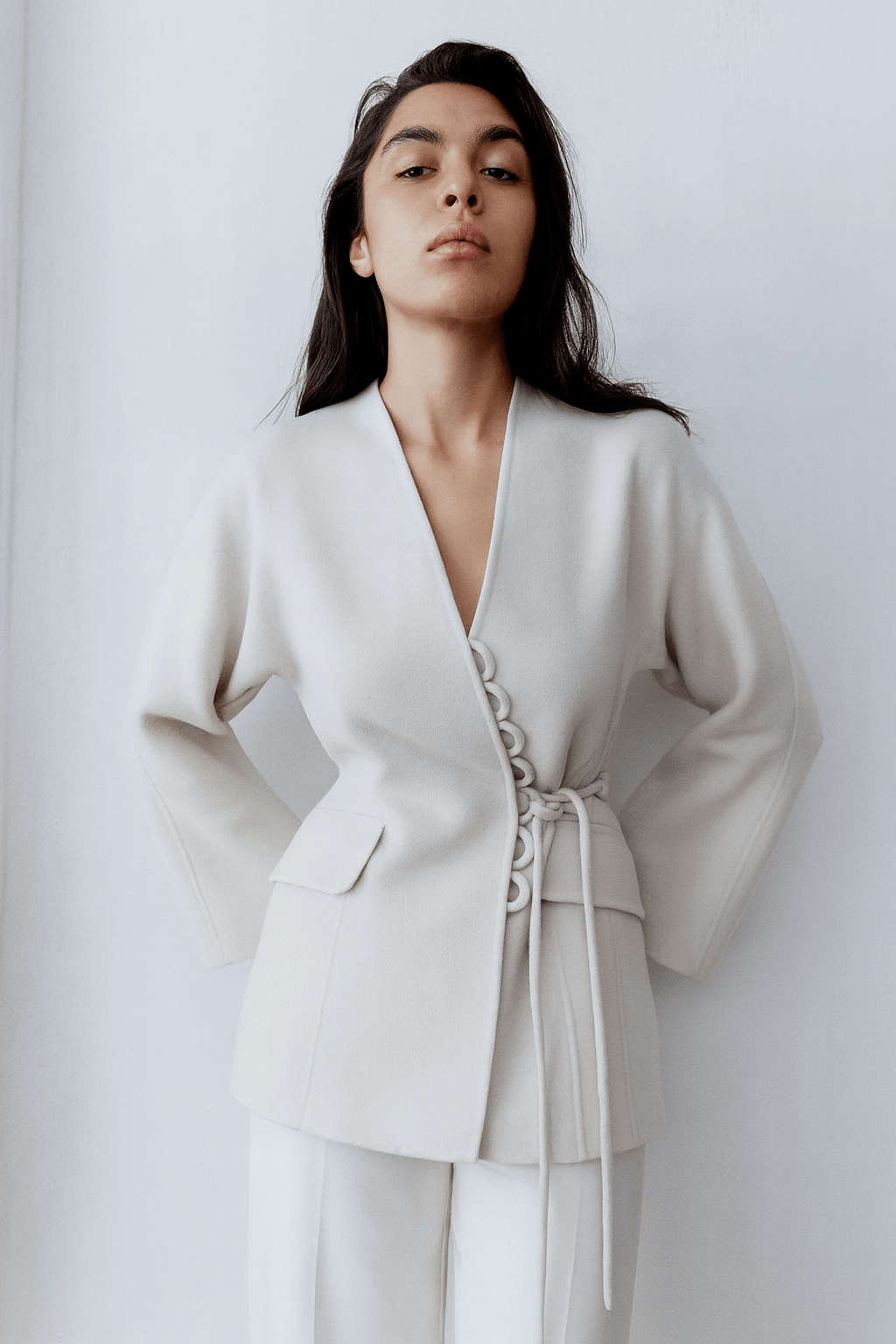 The Budoor Cream Wrap Jacket & Trouser Set - TAL by The Abaya Lab