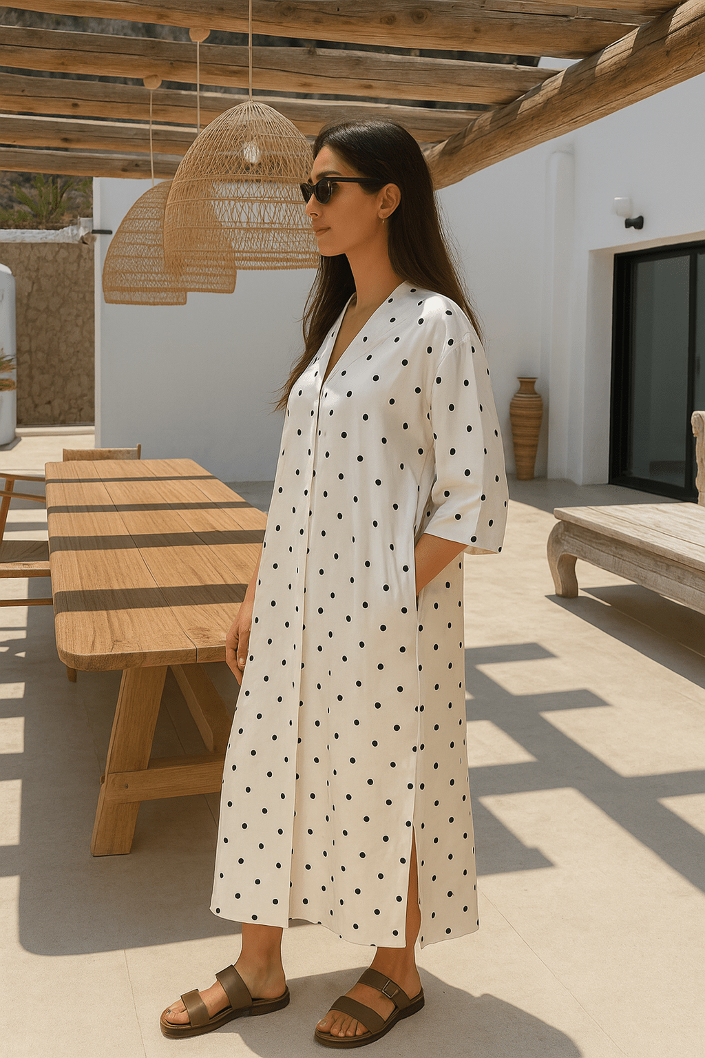 The Hind White Polka Dot Dress – Resort Edition - TAL by The Abaya Lab