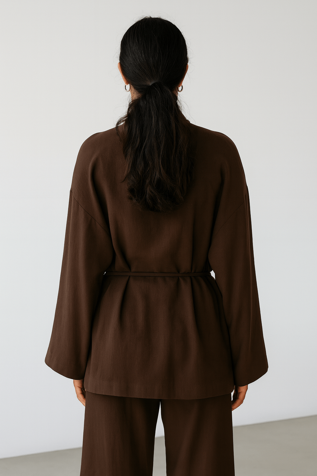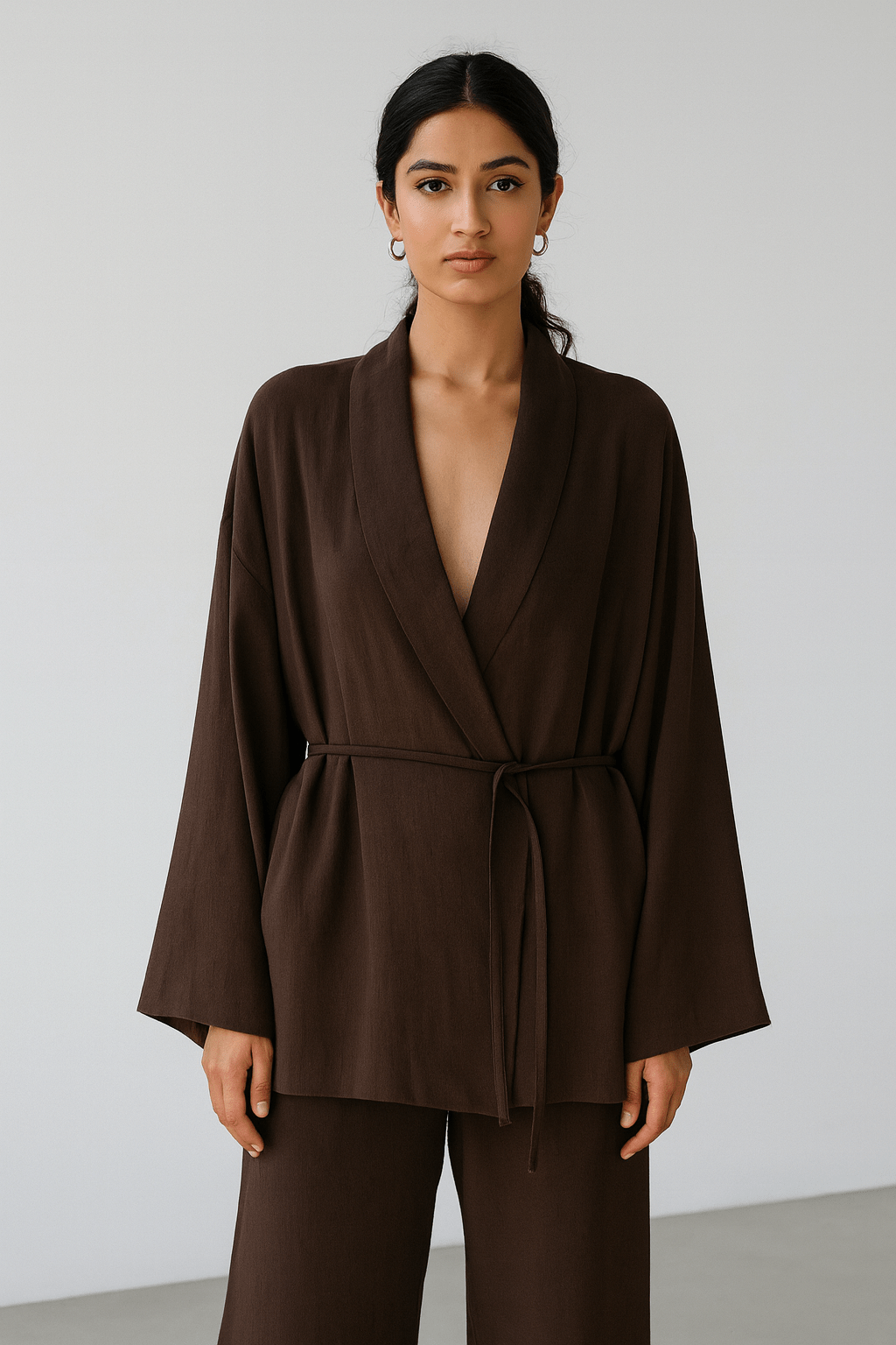 The Reem Brown Linen Luxury Set - TAL by The Abaya Lab