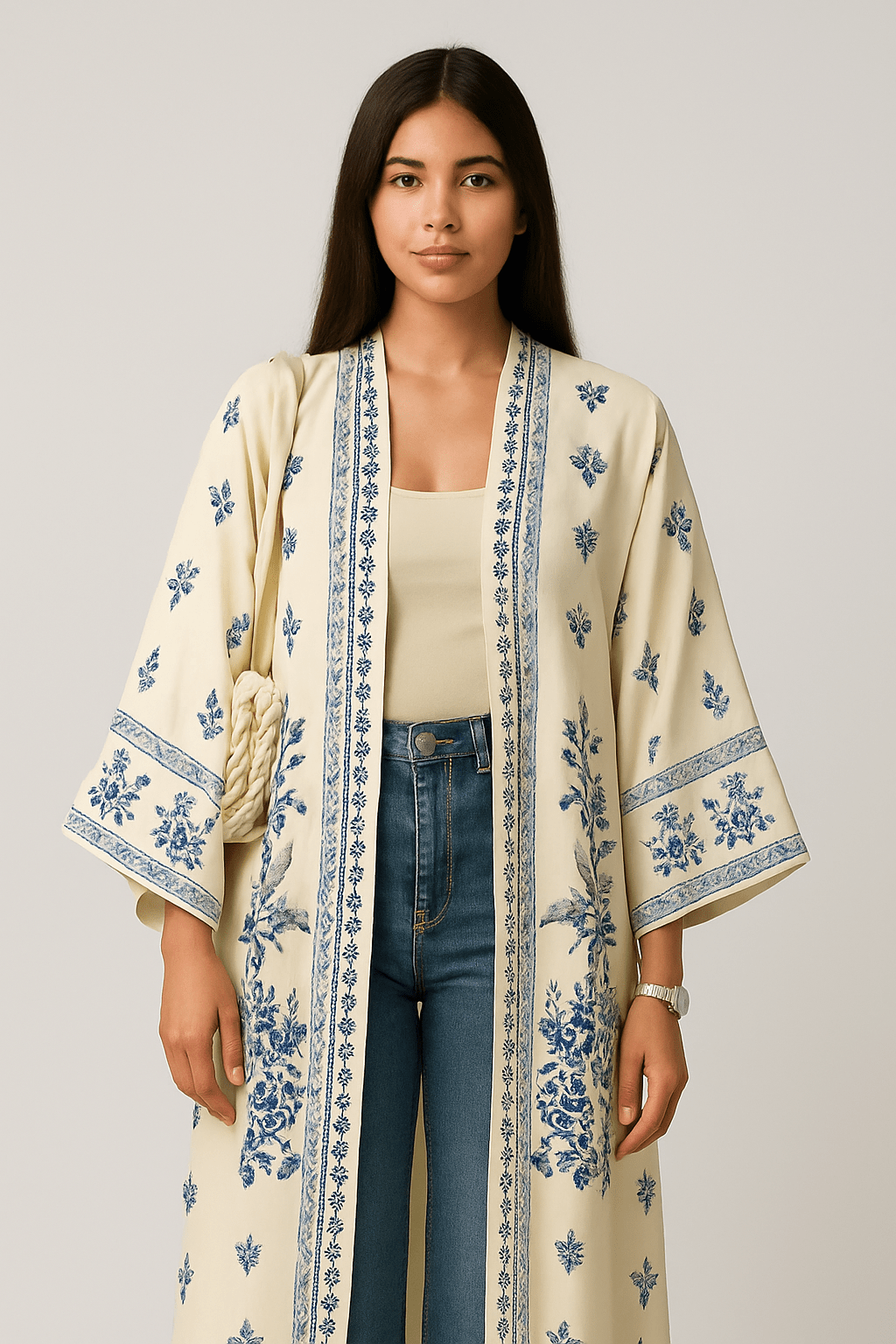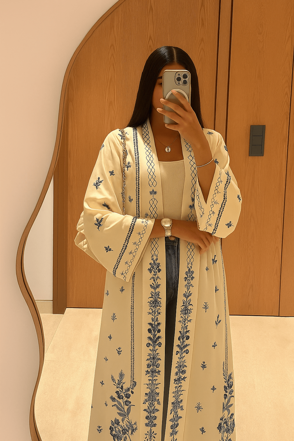 The Ahlam Cream and Light Blue Abaya - TAL by The Abaya Lab