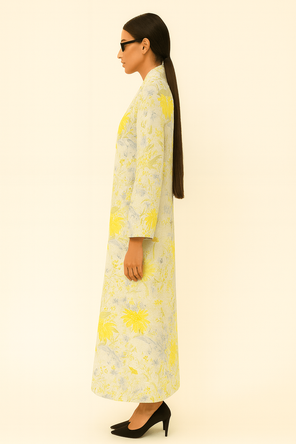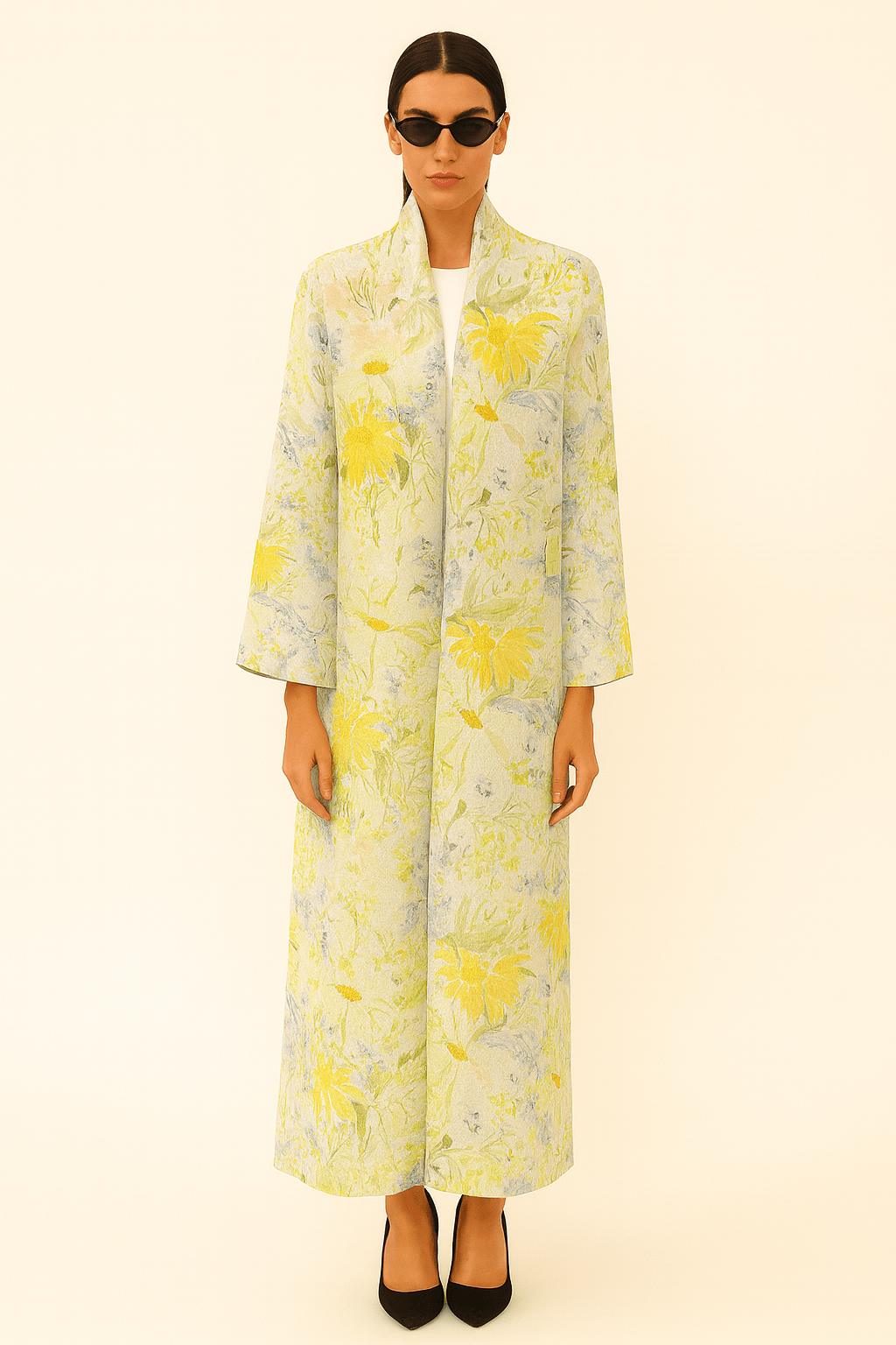 The Mira Yellow Floral Chiffon Abaya - TAL by The Abaya Lab