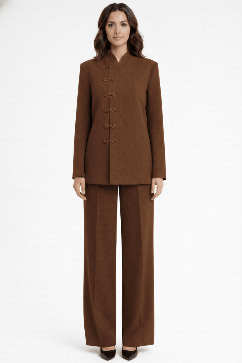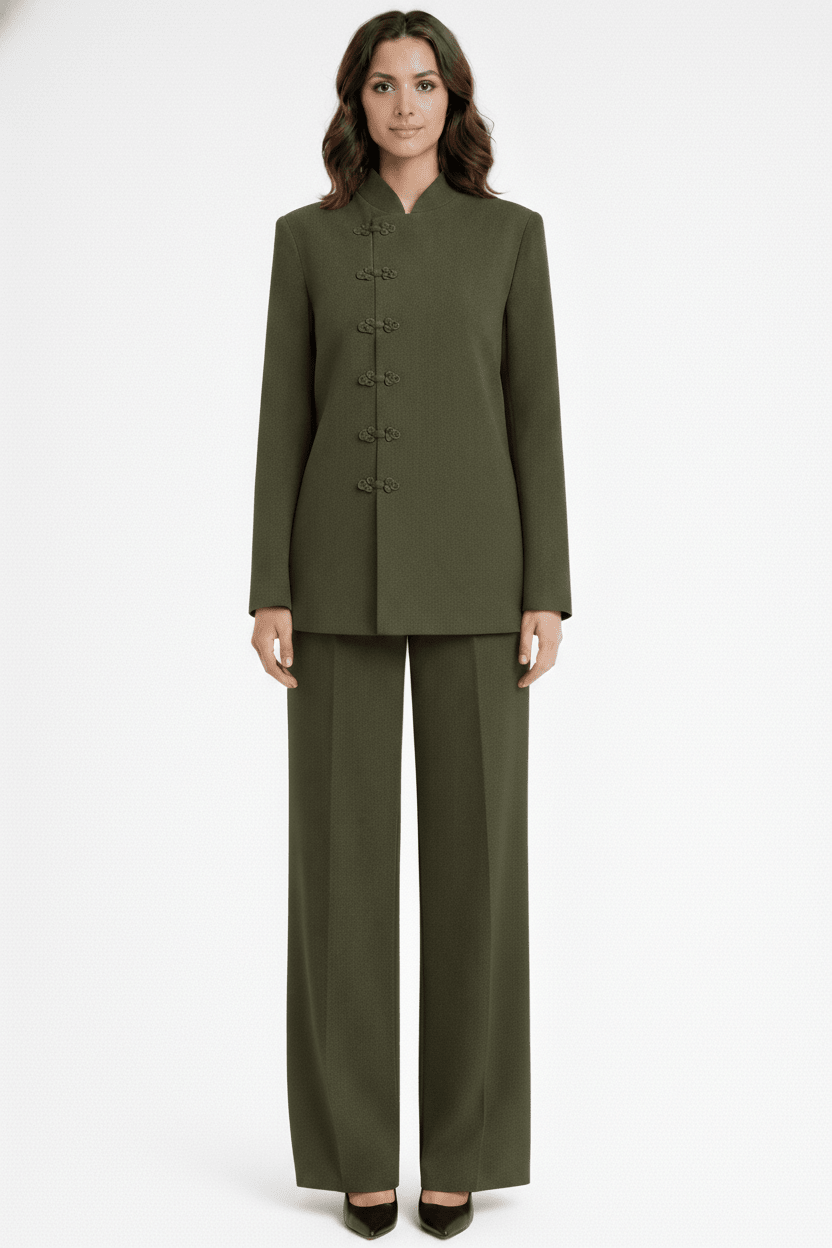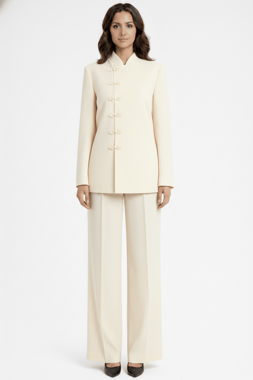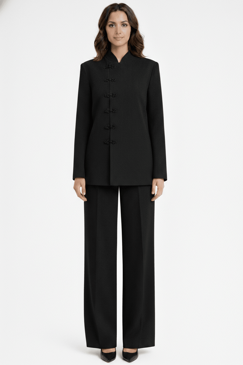 The Latifa Side Closure Mandarin Collar Blazer Set