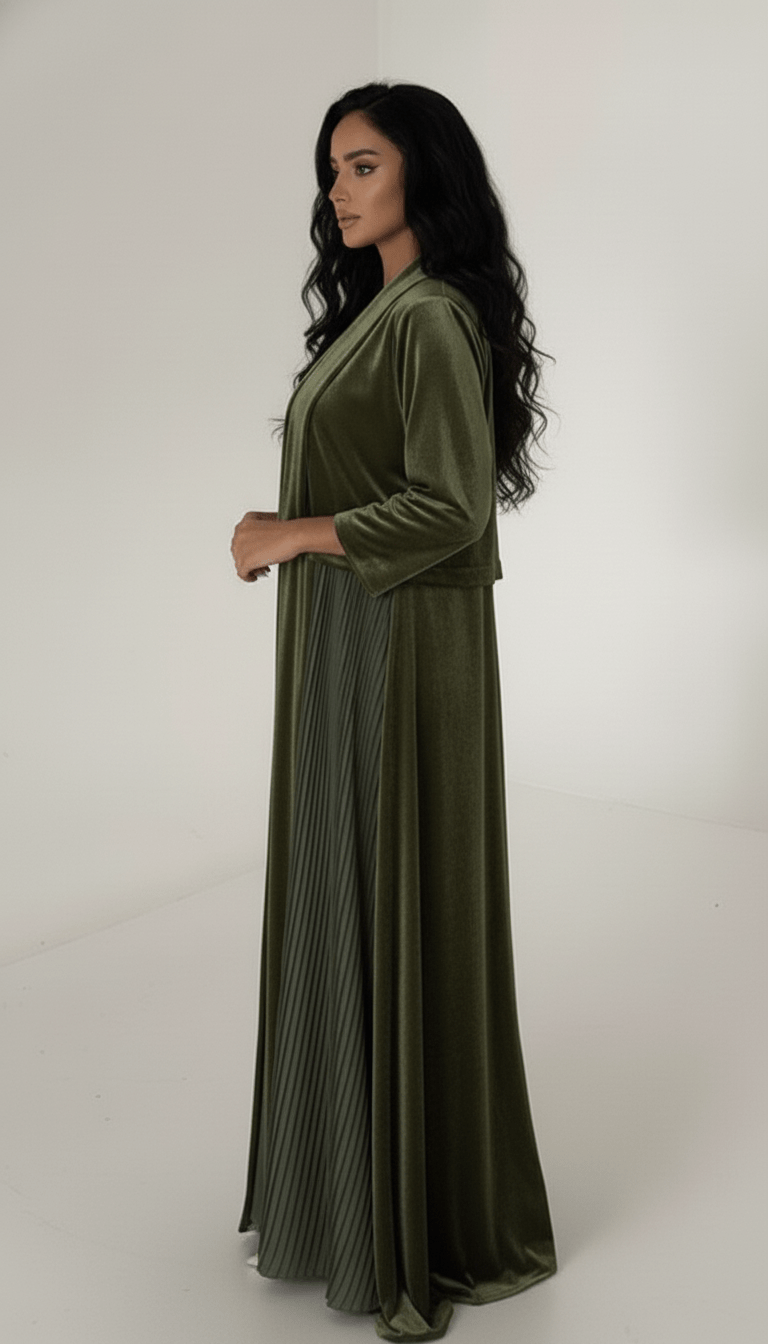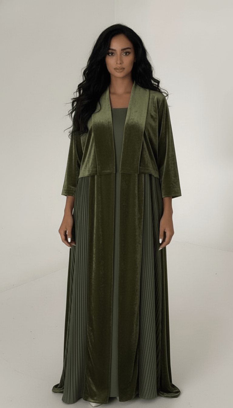 The Amber Green Velvet Pleated Abaya