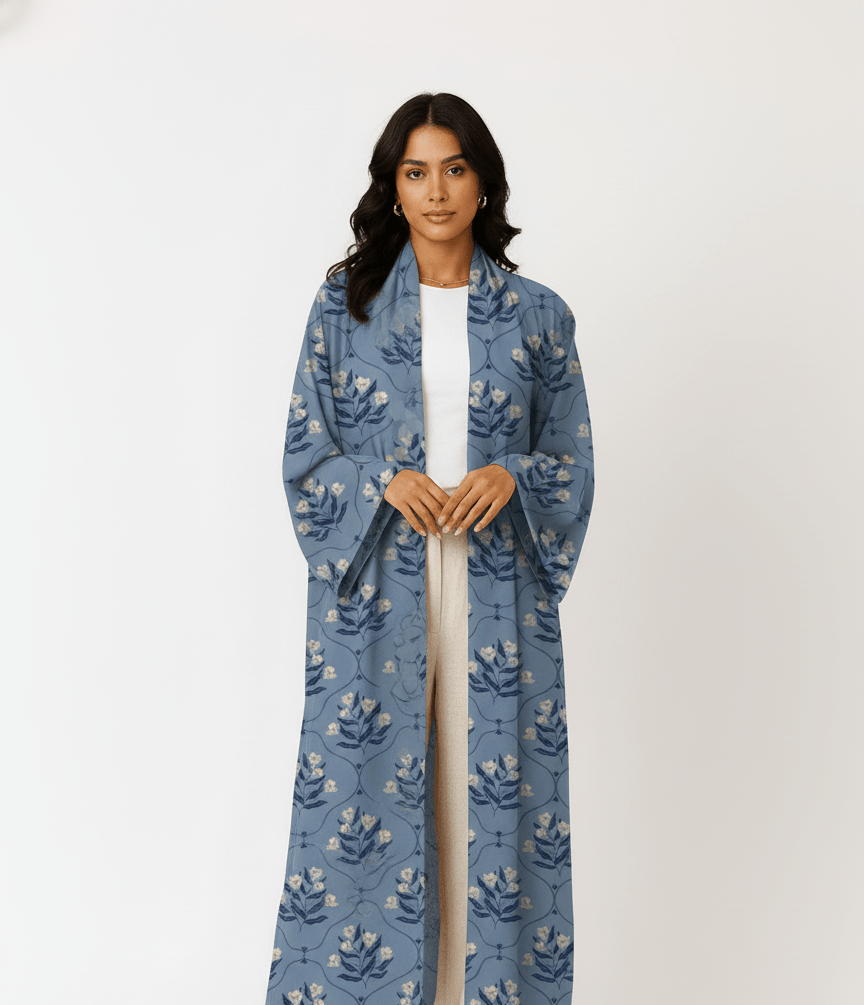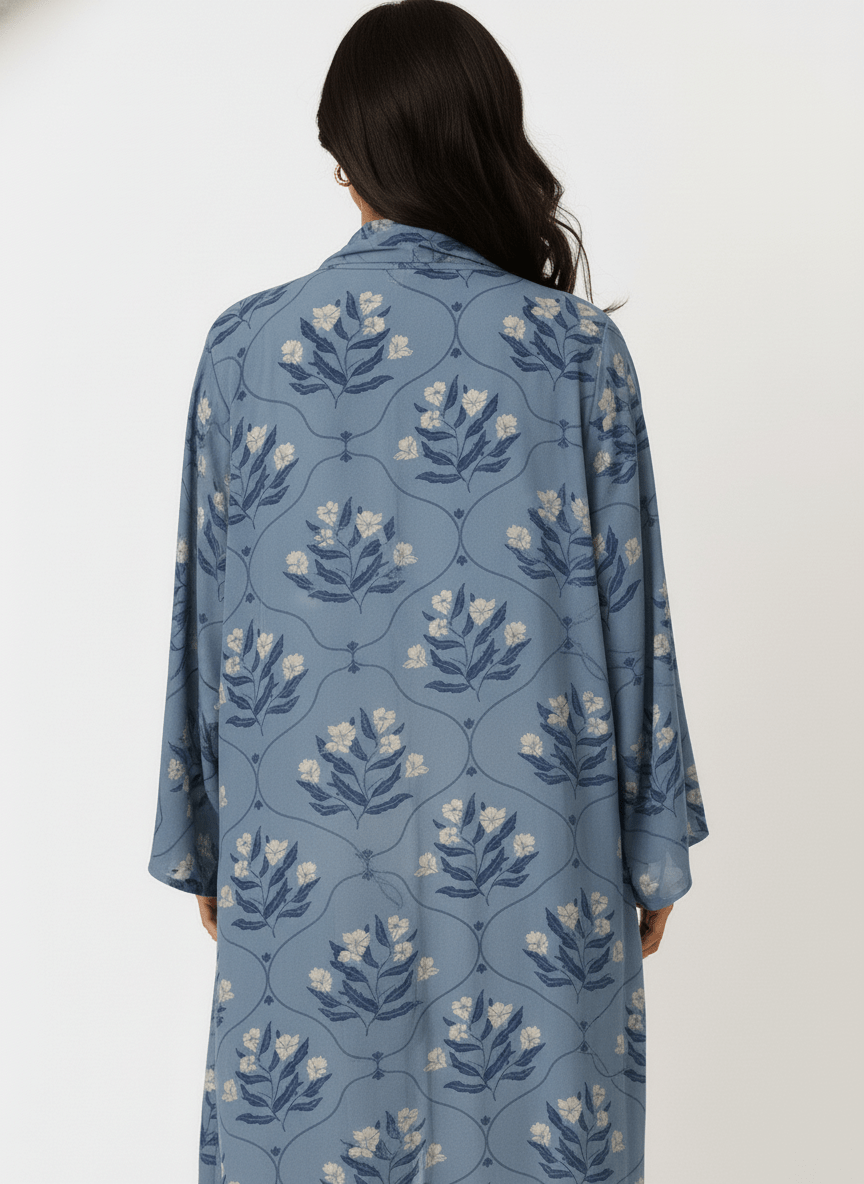 The Amna Dusty Blue Floral Abaya