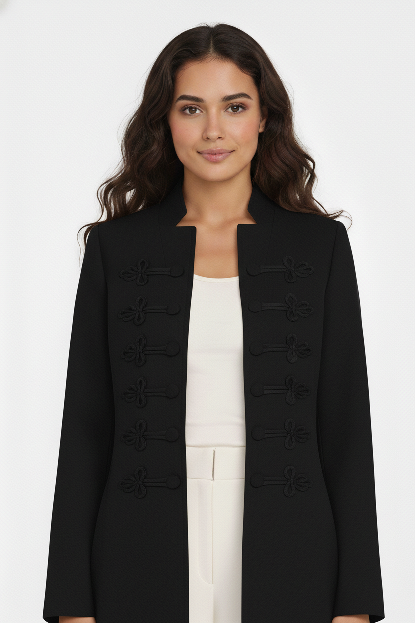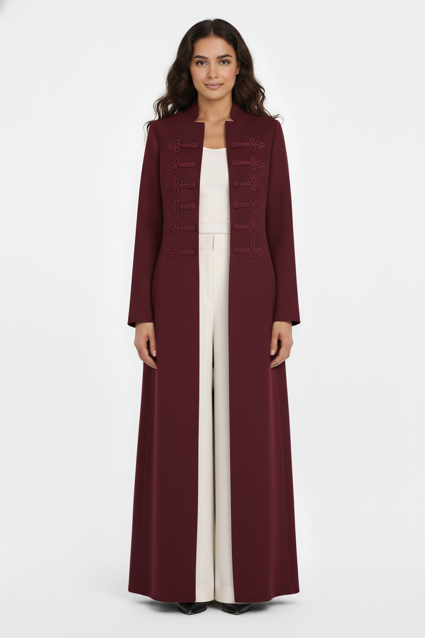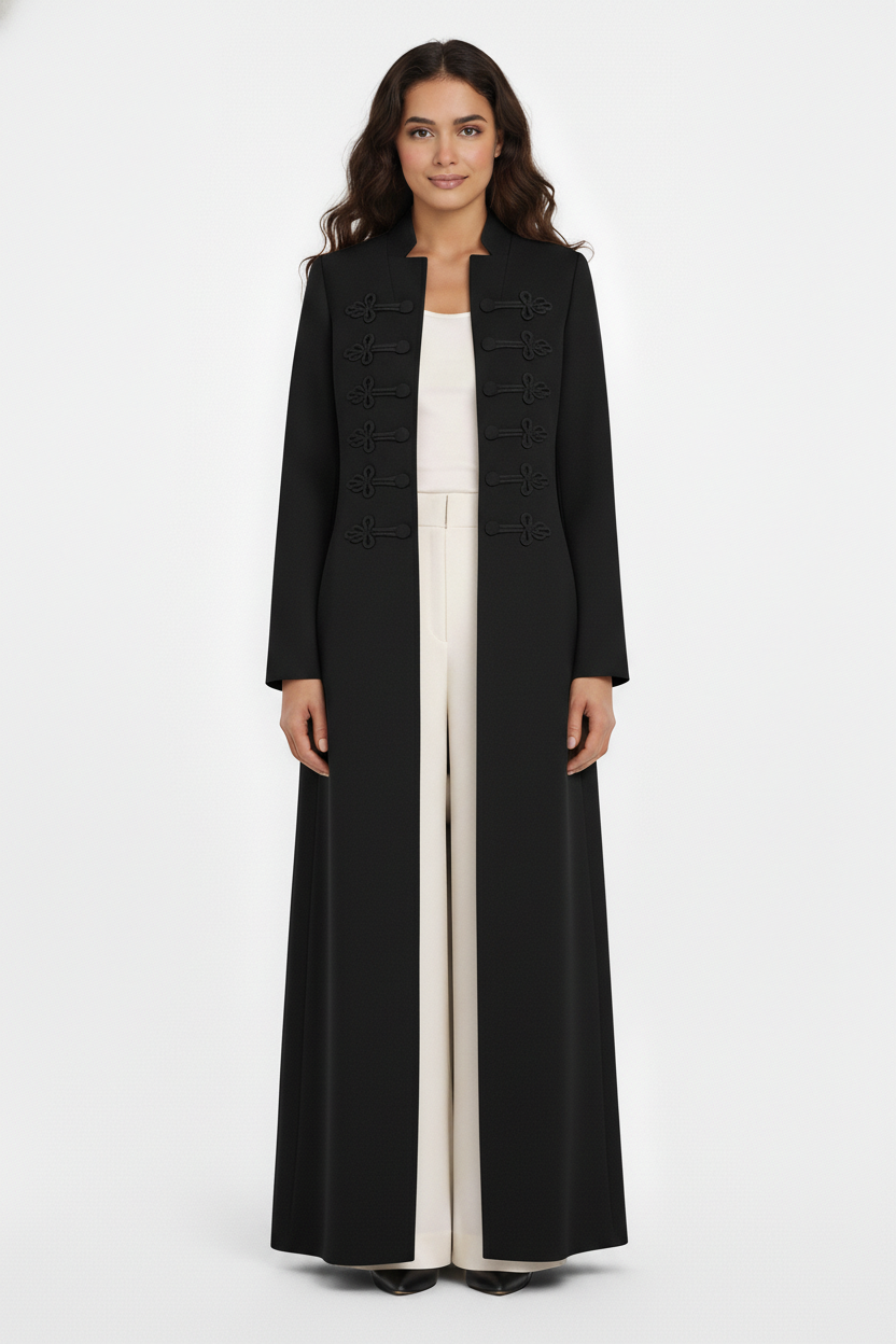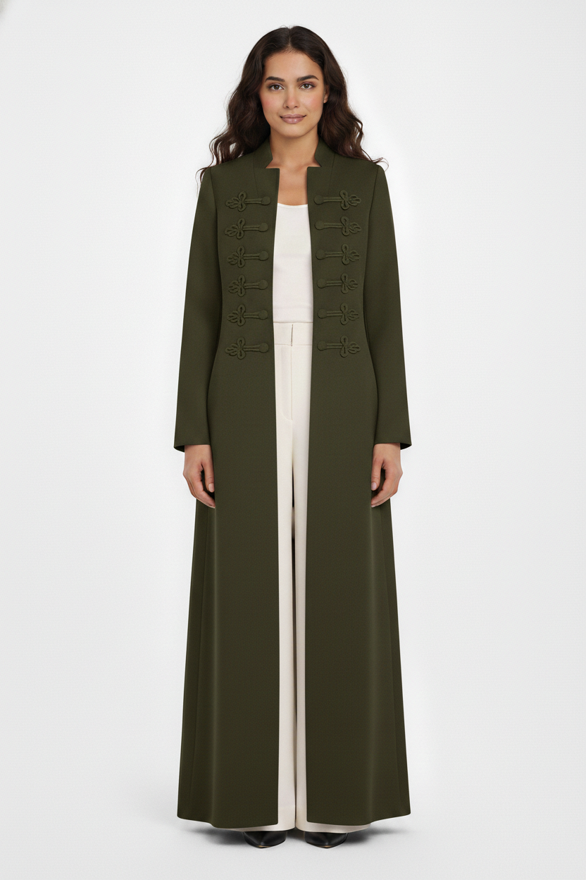 The Deema Military Style Knot-Detail Open Abaya