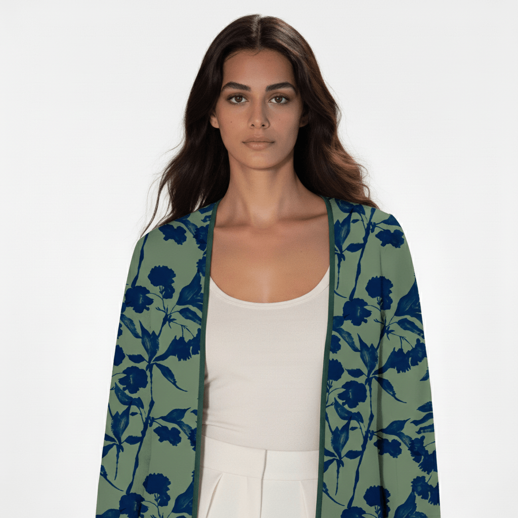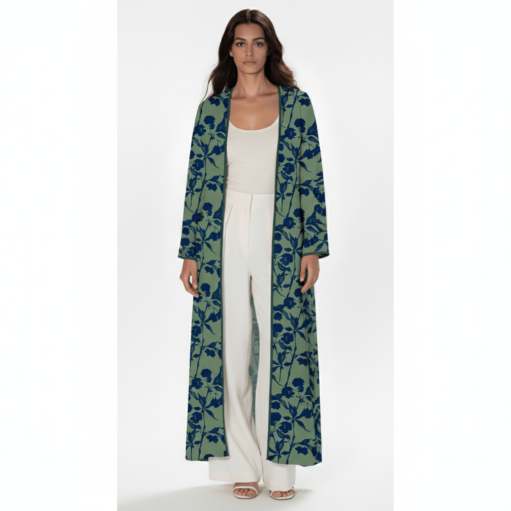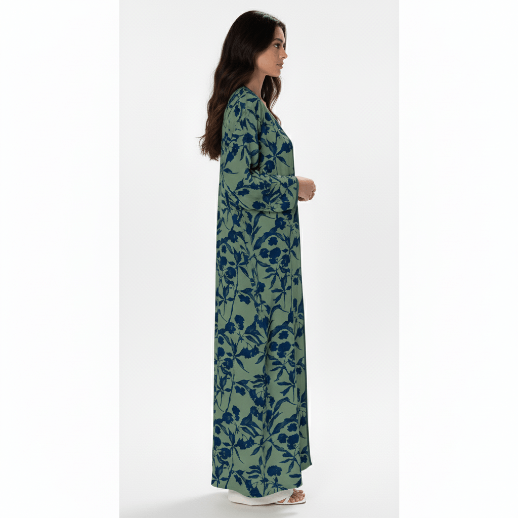 The Fatma Olive Blue Floral Abaya - TAL by The Abaya Lab