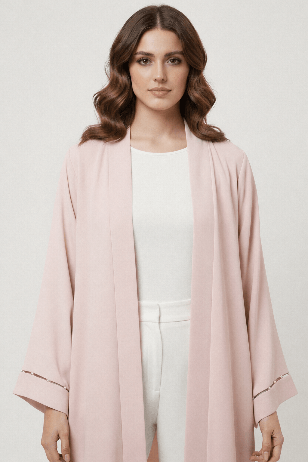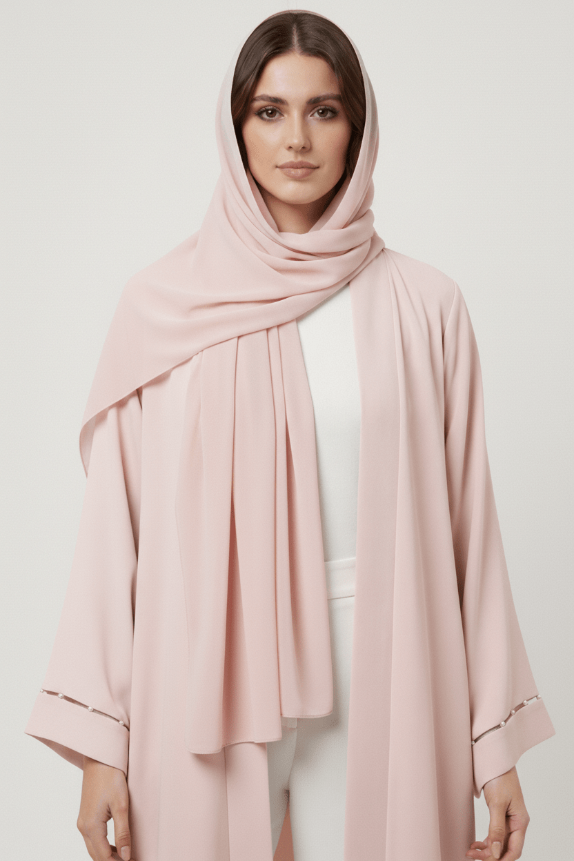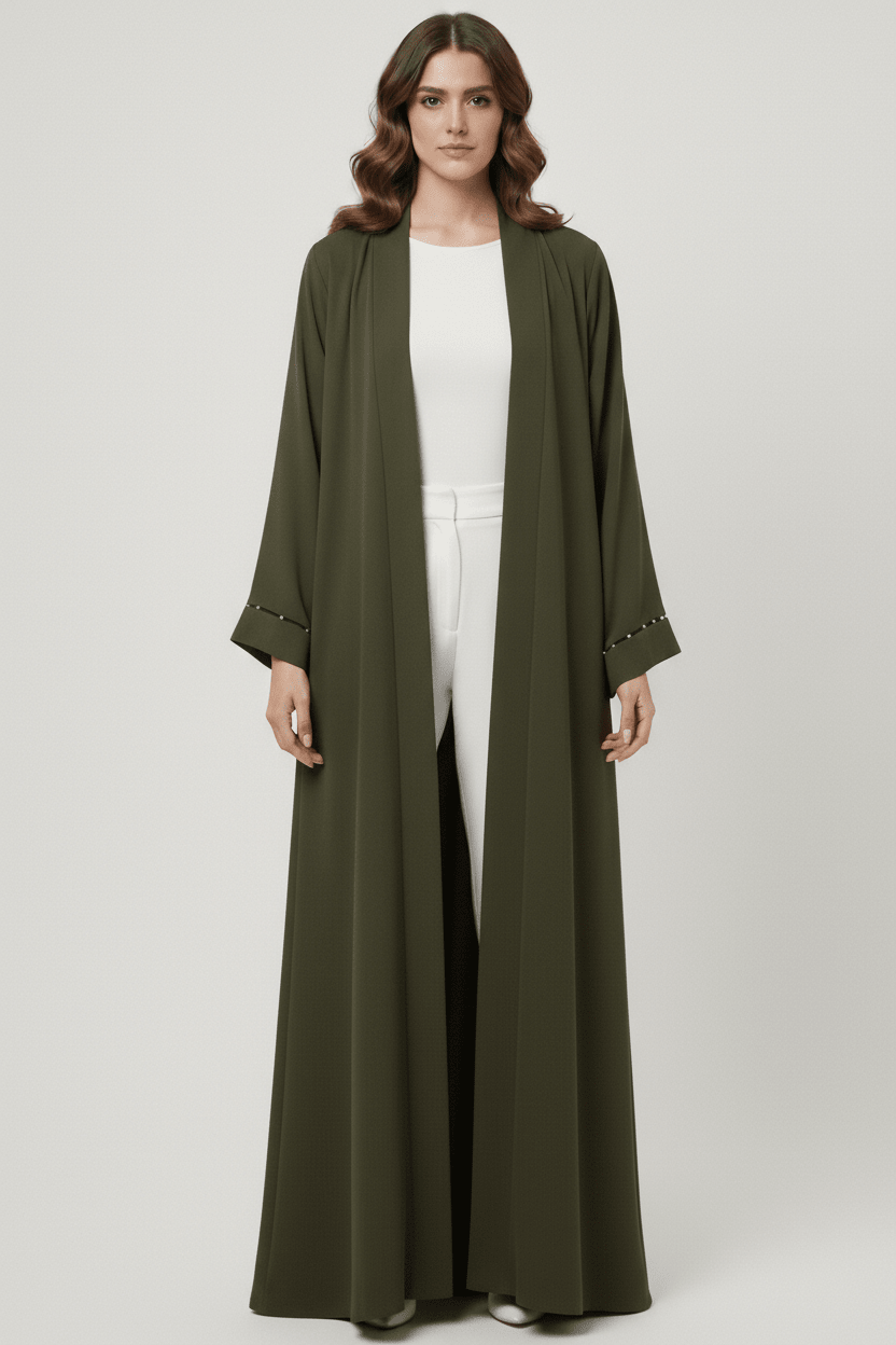 The Hanan Elegance Pearl Detail Open Abaya