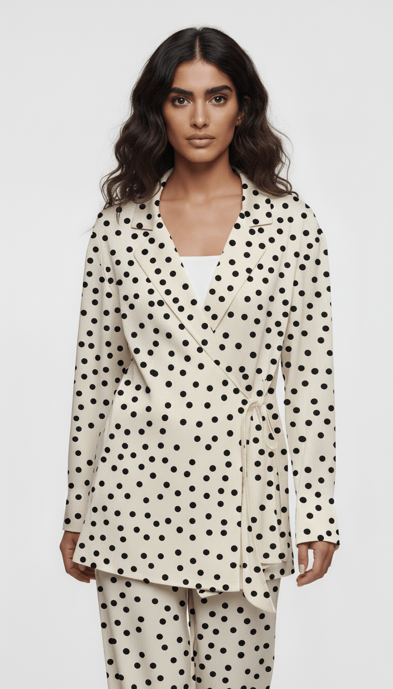 The Haneen Ivory Polka Dot Silk Co-ord Set