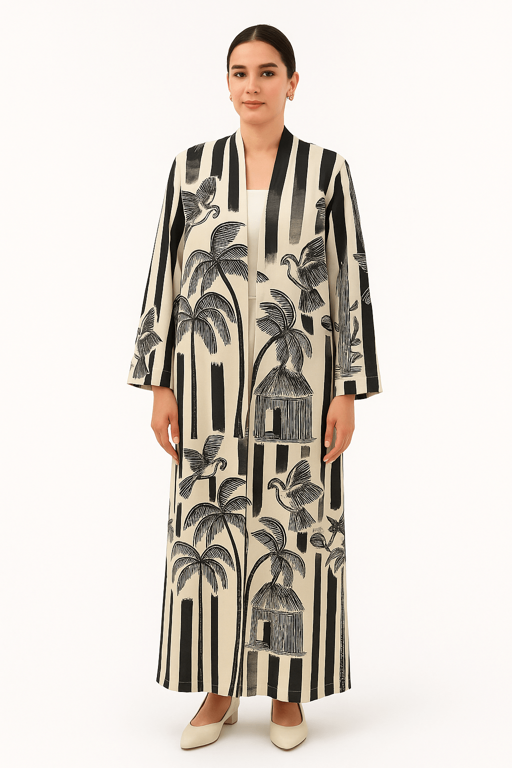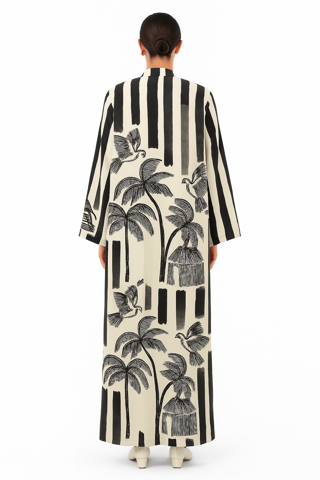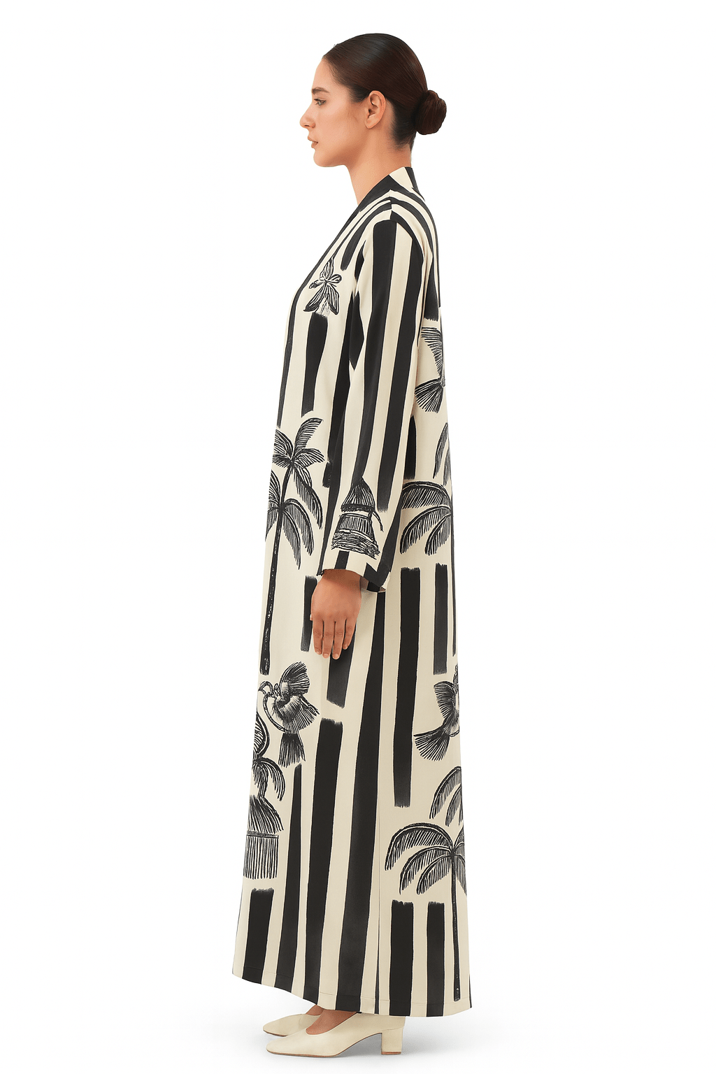 The Lana Palms & Stripes Abaya - TAL by The Abaya Lab