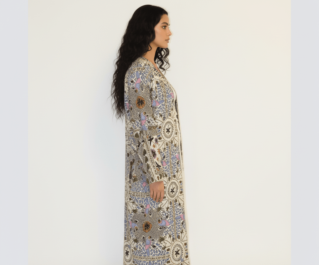 A statement abaya that fuses intricate artistry with effortless sophistication.