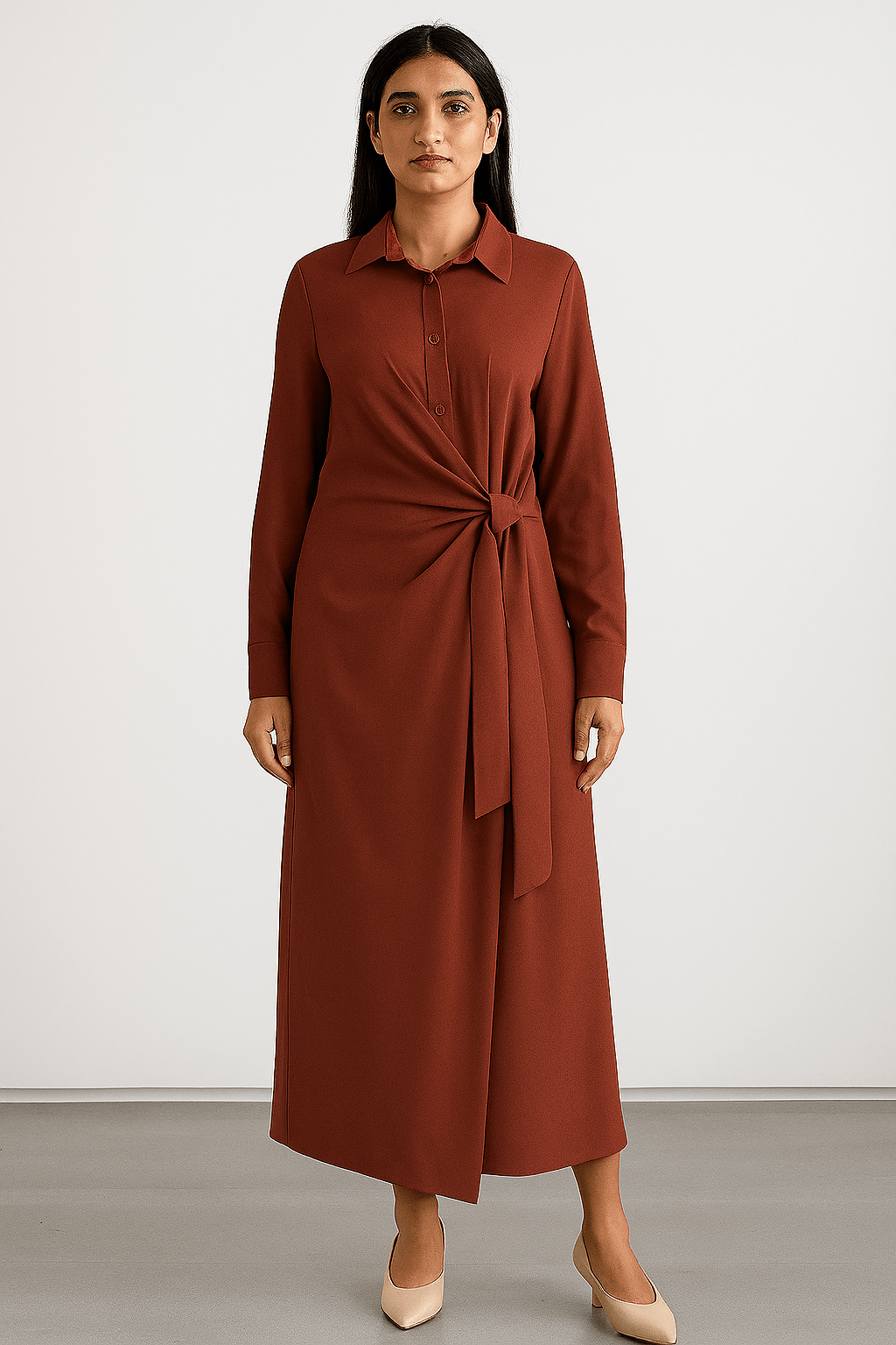 The Manal Terracotta Side-Tie Shirt Dress