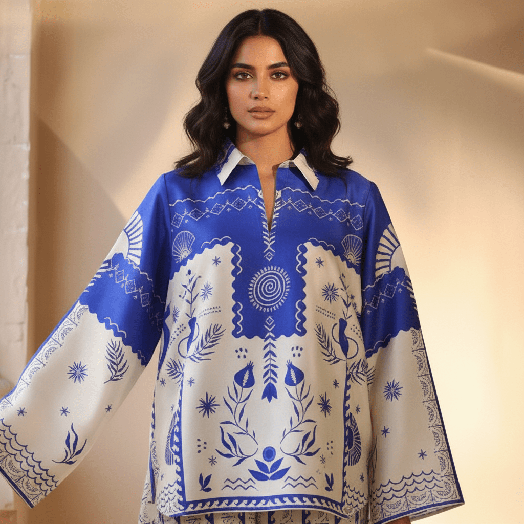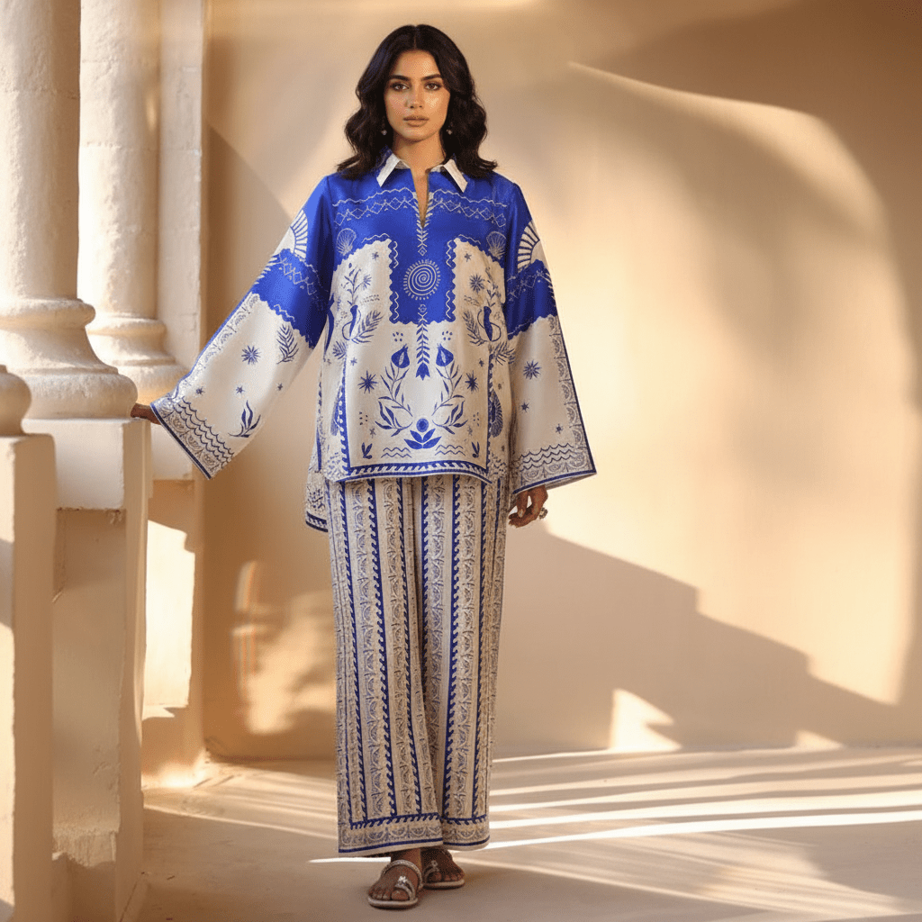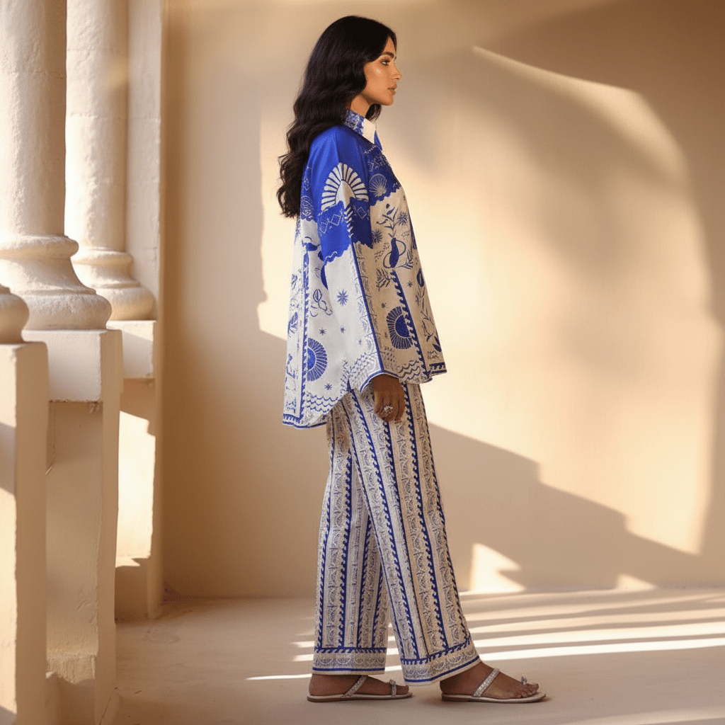 The Marwa Cobalt & Cream Printed Co-ord Set