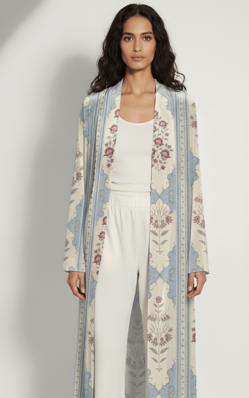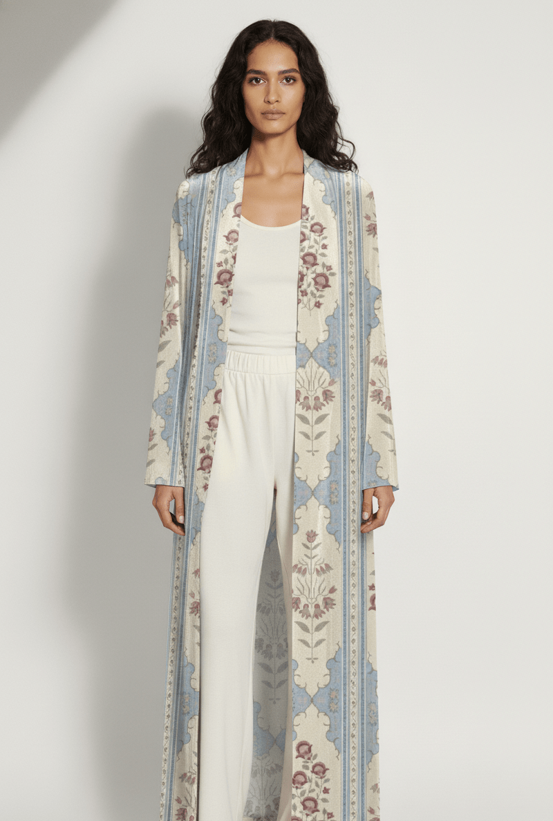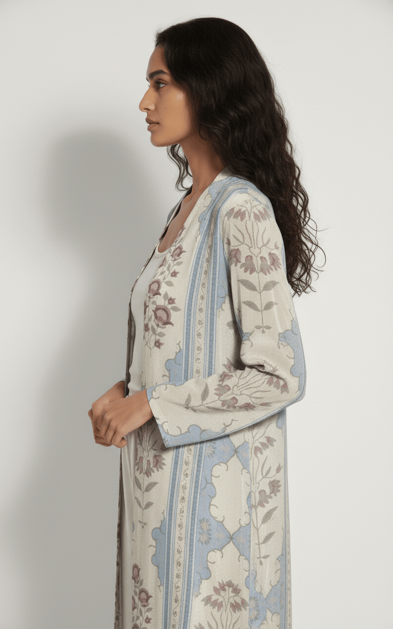 The Marwa Ivory & Dusty Blue Abaya