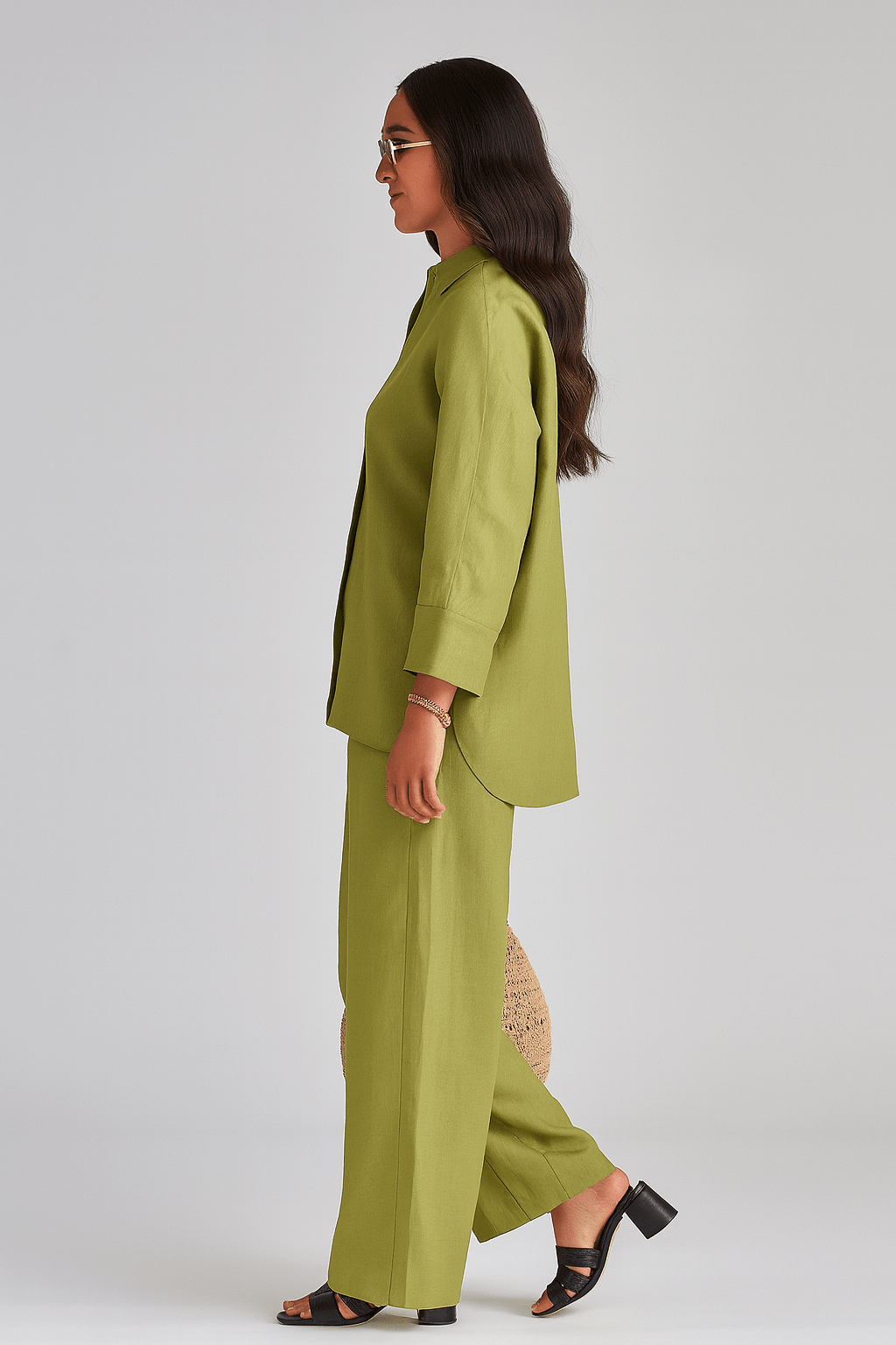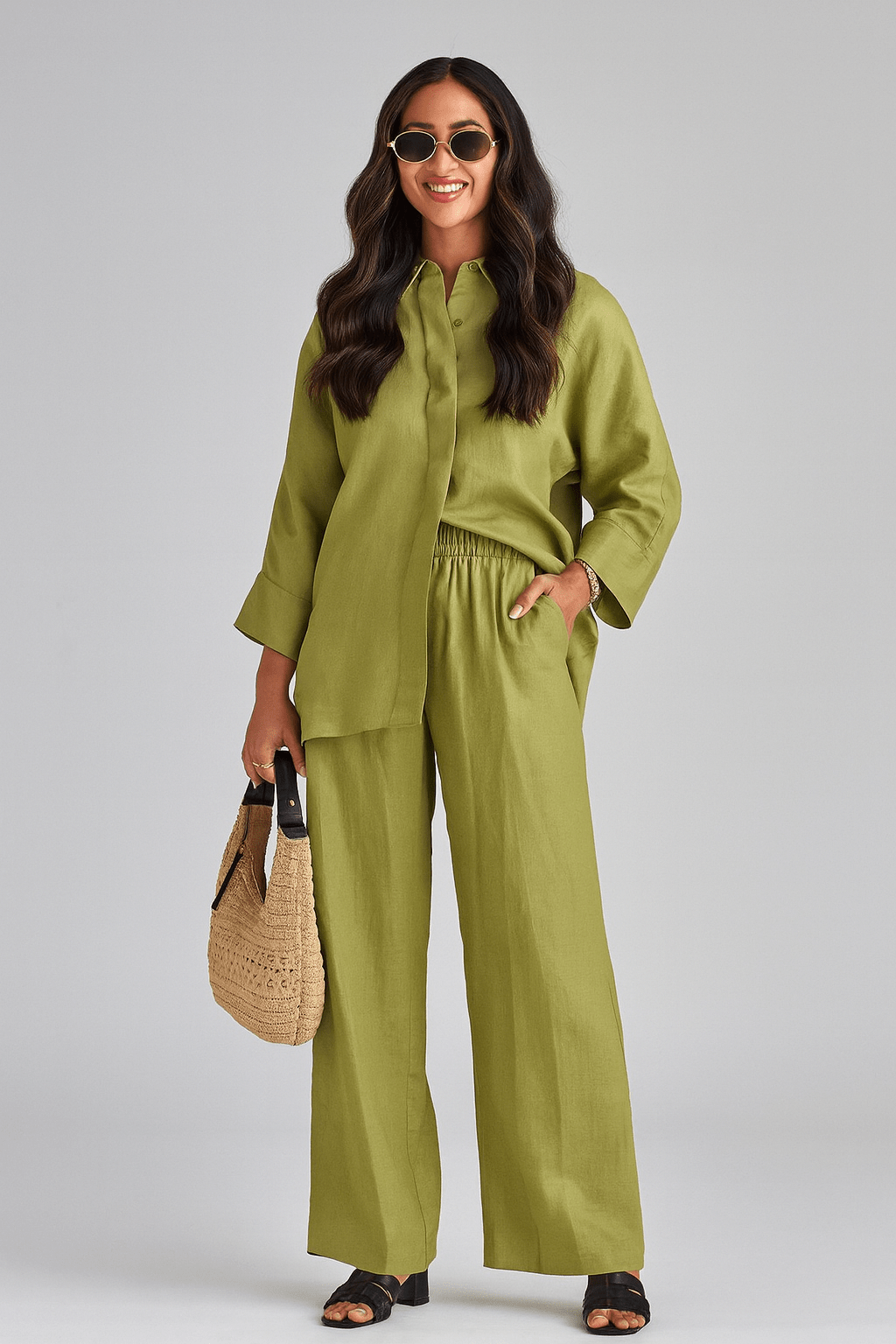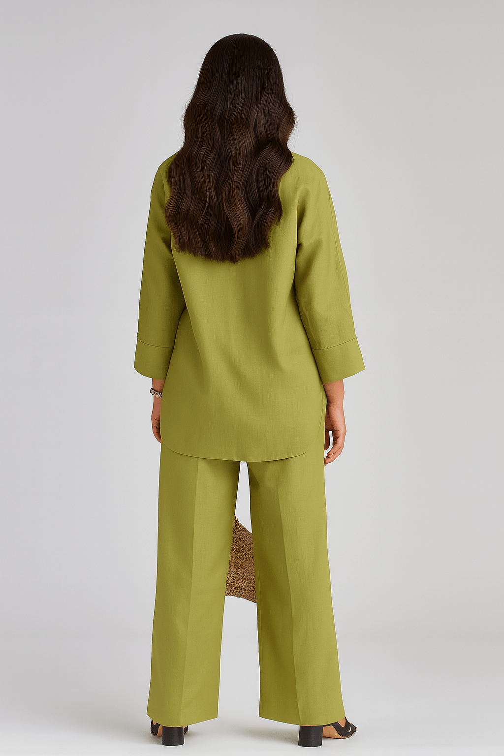 The Reem Green Luxe Linen Casual Set - TAL by The Abaya Lab