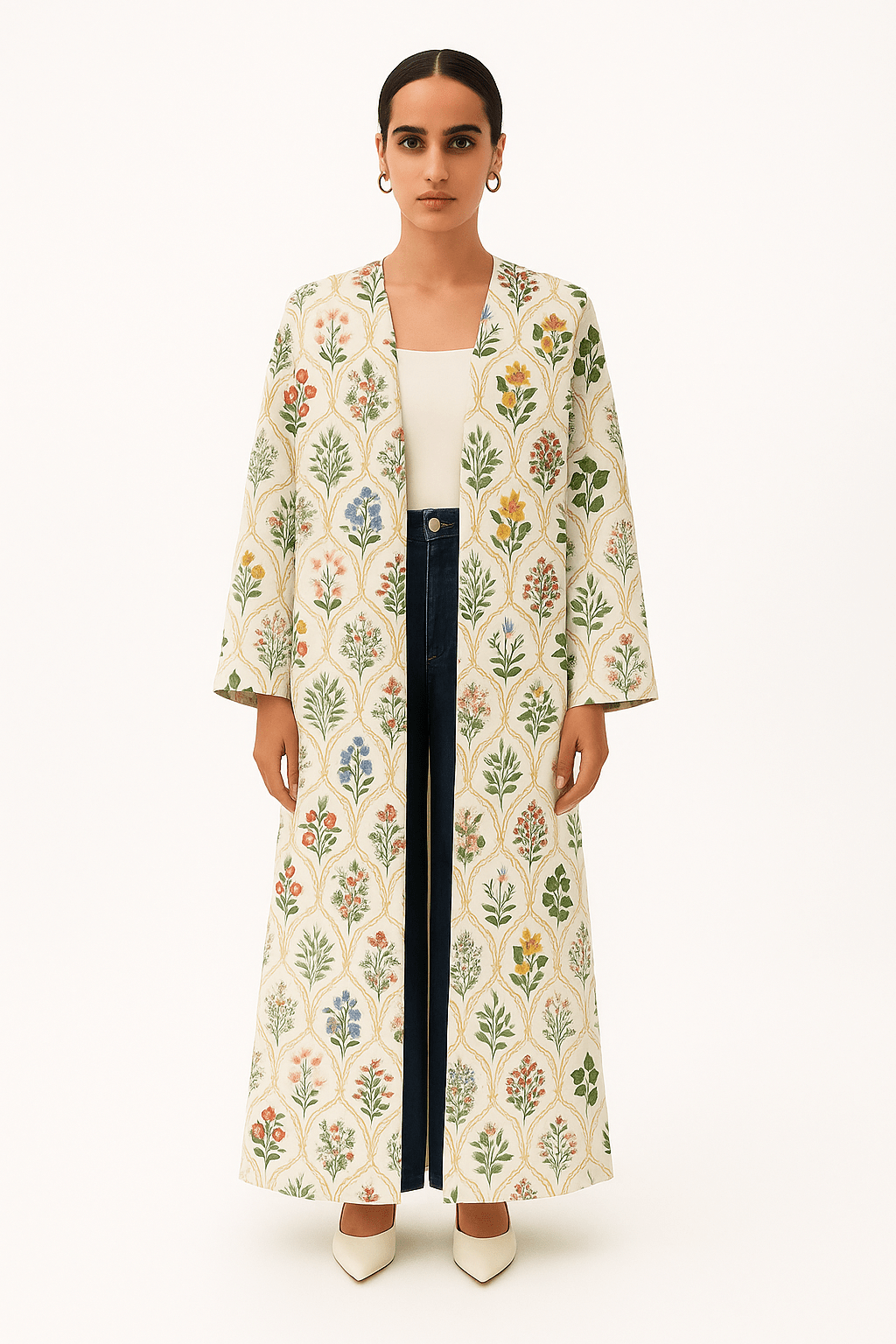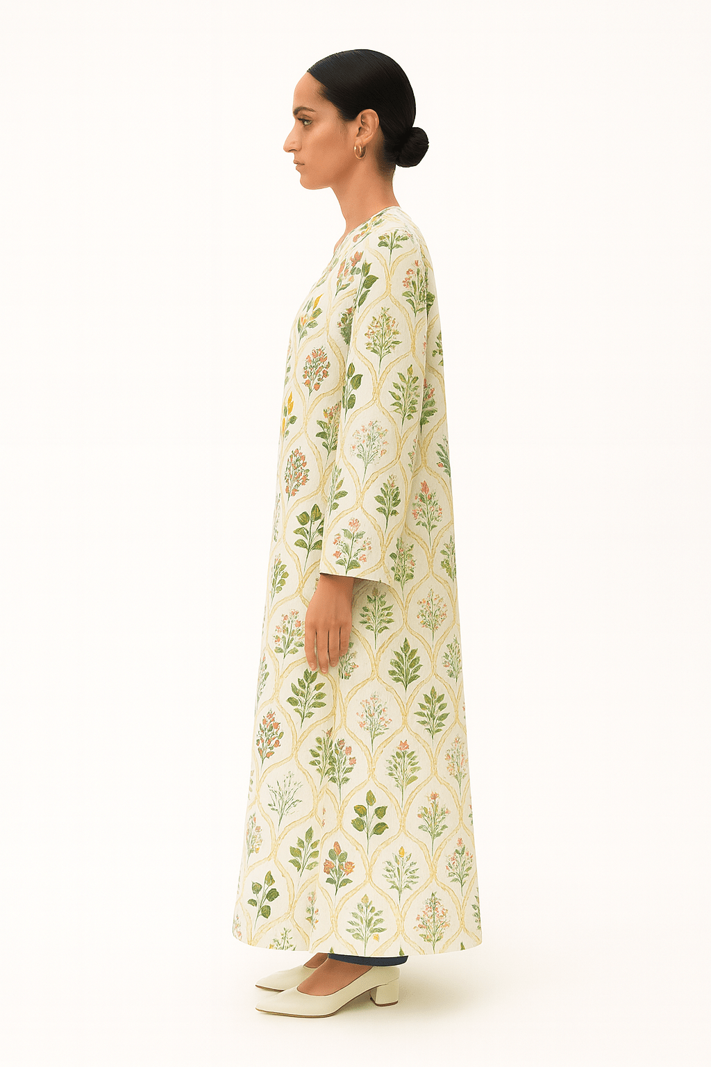 The Reem Ivory Botanical Print Abaya - TAL by The Abaya Lab