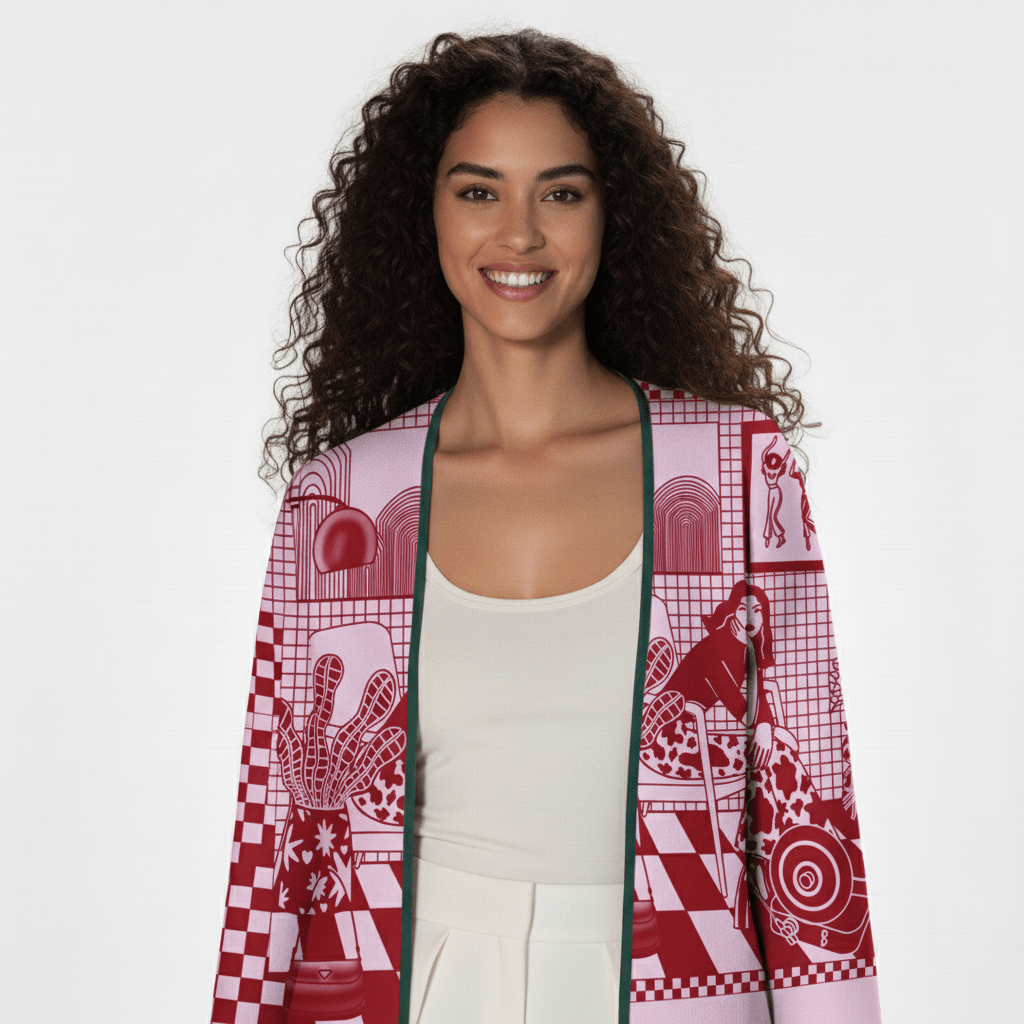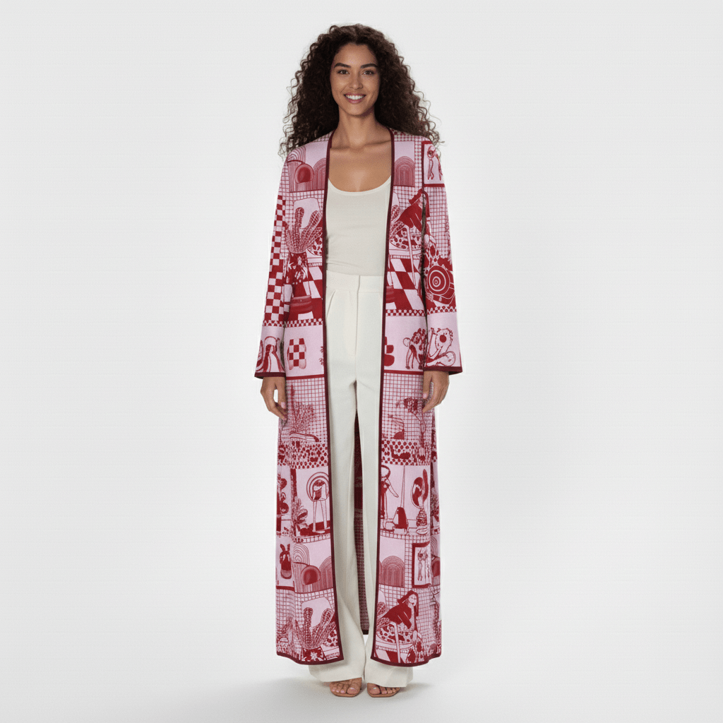 Crafted in smooth cotton satin, this red graphic-print kimono brings a modern, art-inspired touch to any look. The fluid silhouette and contrast trim lend structure to its relaxed drape, while the fabric’s subtle sheen elevates casual styling. Layer it over neutrals or tailored separates for an effortless yet distinctive finish.