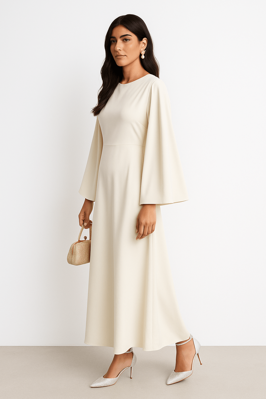The Yasmina Flared Sleeve Dress – Pearl White Edition